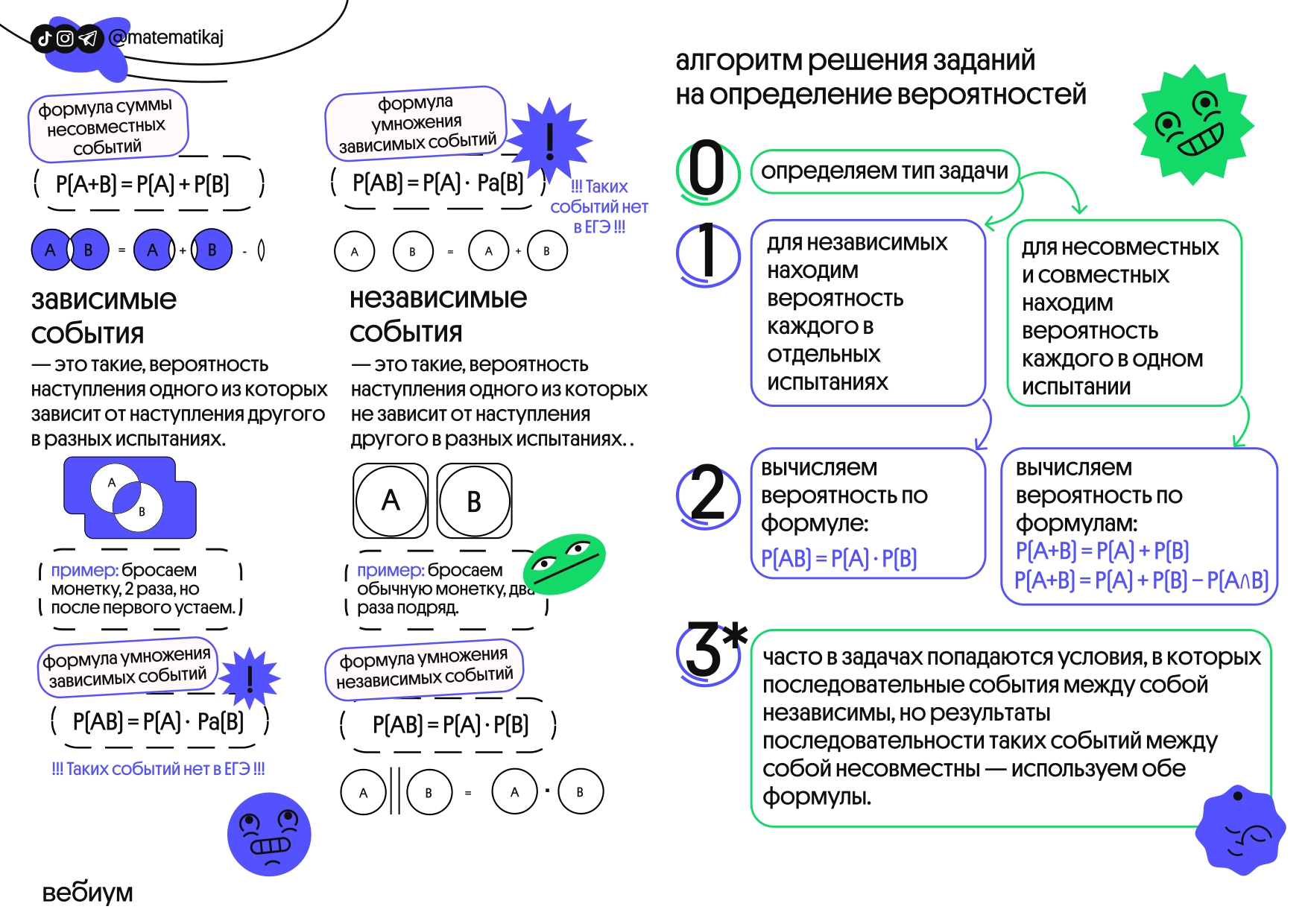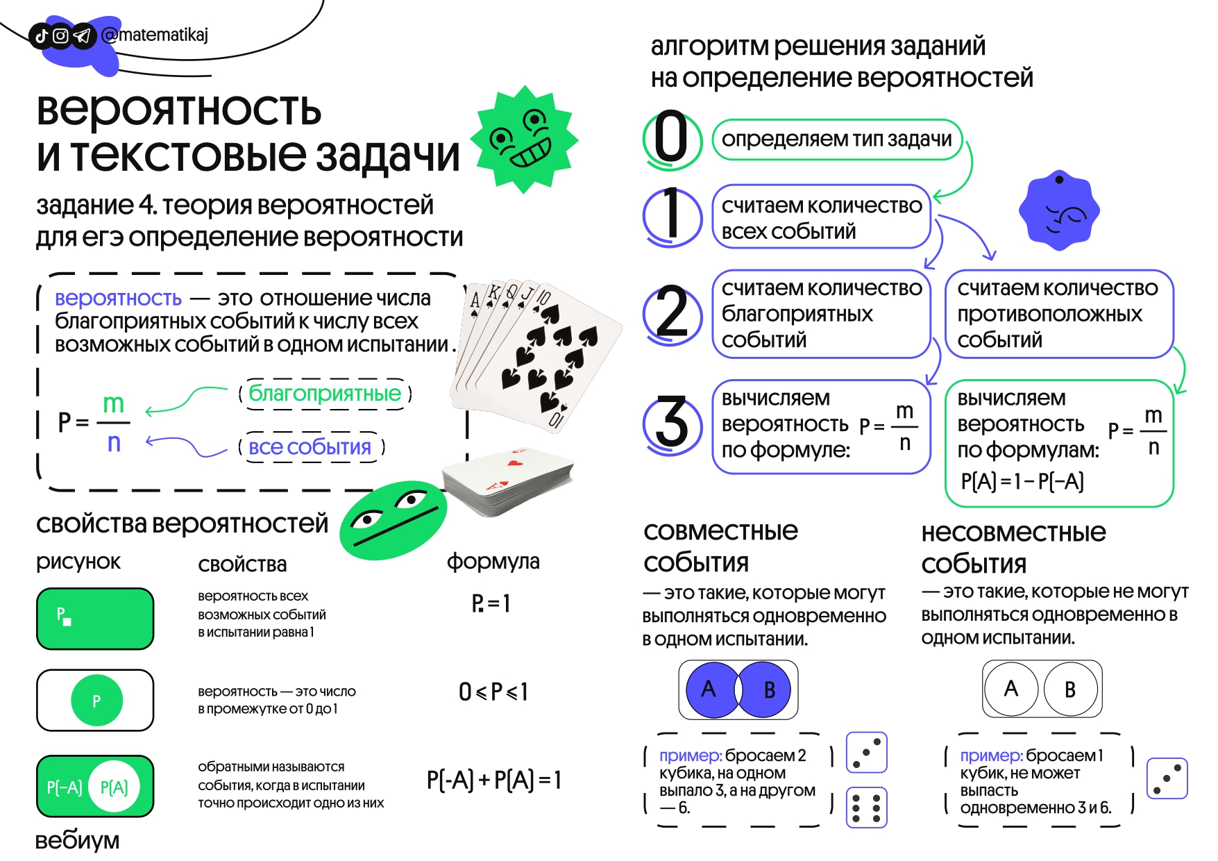 В ЕГЭ по математике вам точно попадутся задачки на вероятность и текстовые задания, поэтому мы сделали для вас карточки, которые вы можете скачать и использовать.