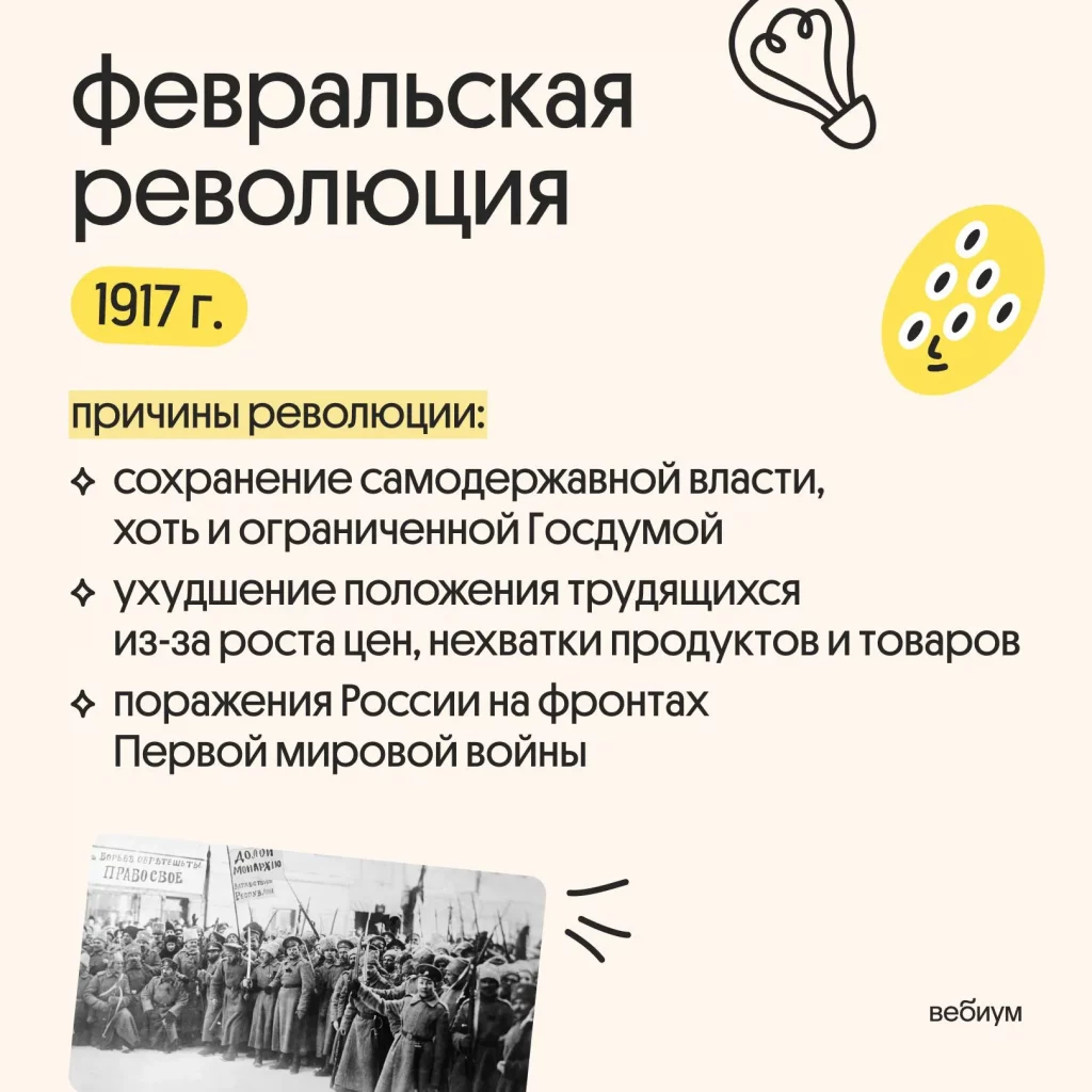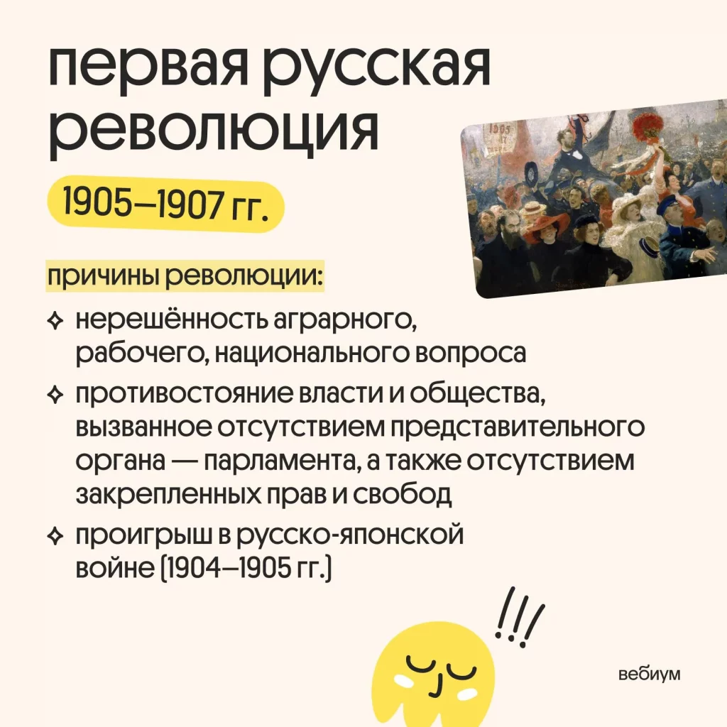 Разбираемся с Первой русской революцией, а также с Февральской революцией и Октябрьской. В этой шпаргалке причины, итоги и ключевые даты революций.