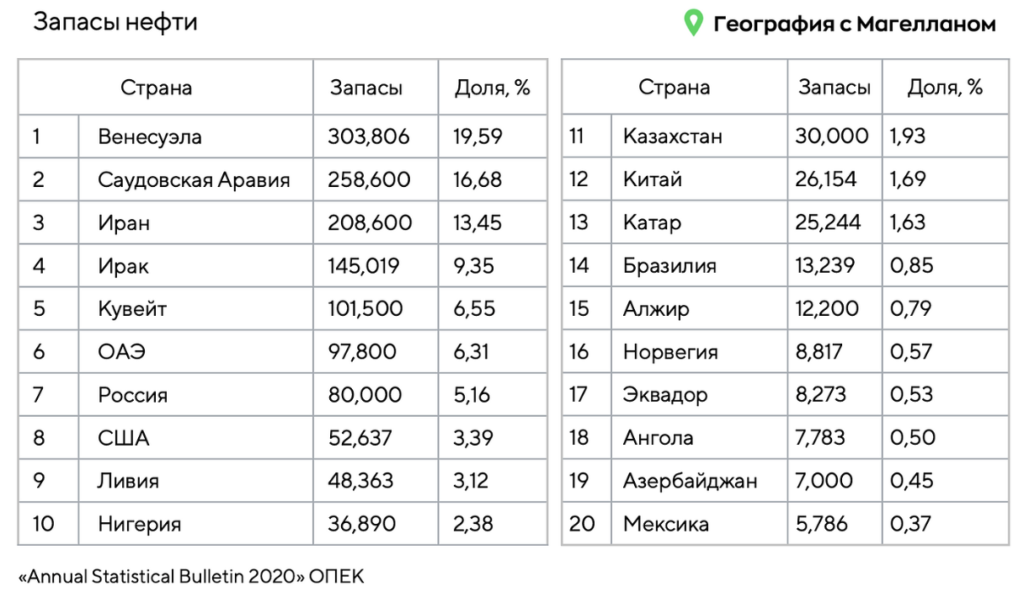Какие три из перечисленных стран являются лидерами по запасам нефти в мире? Запишите в ответ цифры, под которыми они указаны.