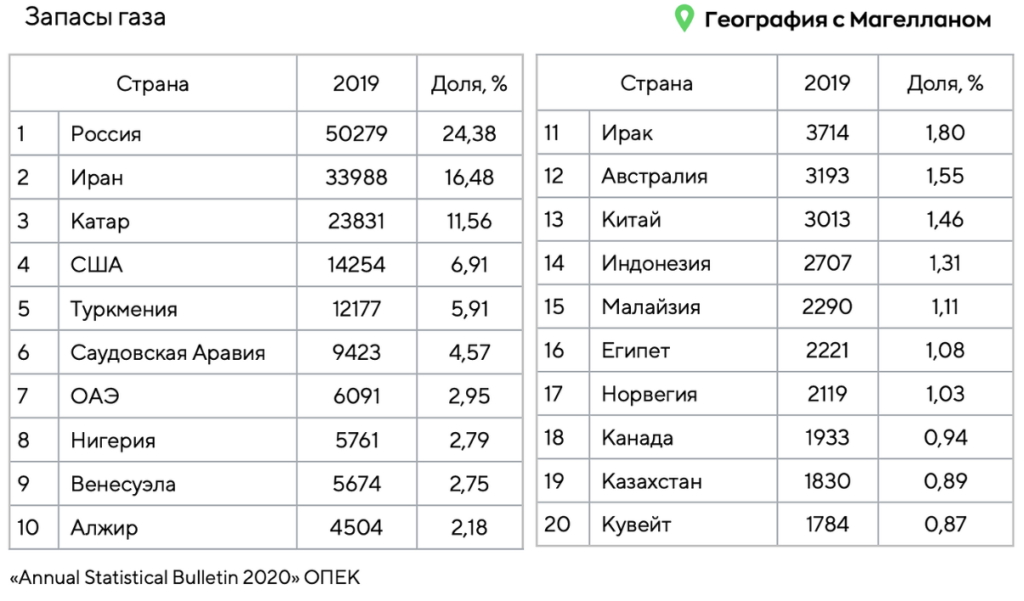 Какие три из перечисленных стран являются лидерами по запасам природного газа в мире? Запишите в ответ цифры, под которыми они указаны.