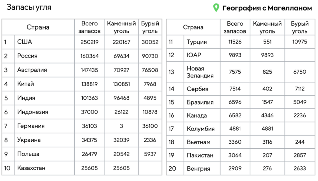 Какие три из перечисленных стран являются лидерами по запасам каменного угля в мире? Запишите в ответ цифры, под которыми они указаны.