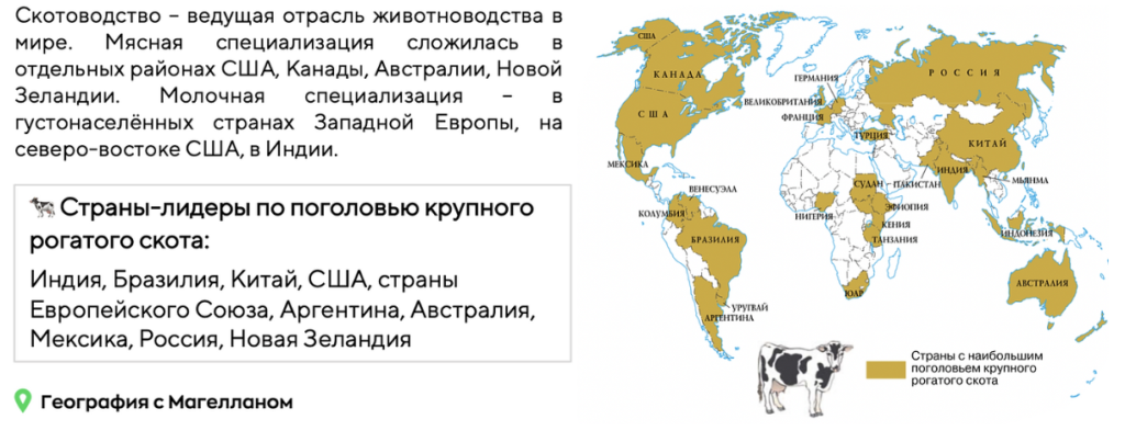 Какие три из перечисленных стран лидируют по поголовью крупного рогатого скота? Запишите в ответ цифры, под которыми они указаны.