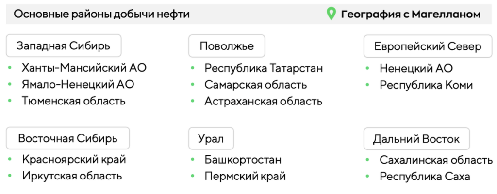 Какие три из перечисленных регионов России являются лидерами по добыче нефти? Запишите в ответ цифры, под которыми они указаны.