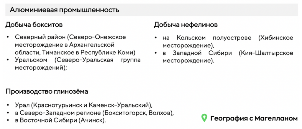 Какие три из перечисленных городов России лидируют по производству глинозёма? Запишите в ответ цифры, под которыми они указаны.