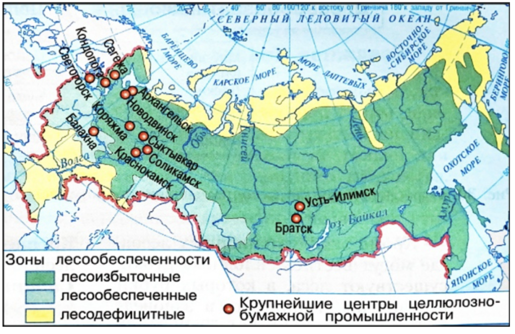 В каких трёх из перечисленных городов работают крупные целлюлозно-бумажные заводы? Запишите в ответ цифры, под которыми они указаны.
