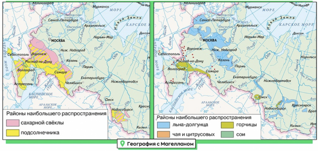 Какие три из перечисленных региона России лидируют по сбору подсолнечника? Запишите в ответ цифры, под которыми они указаны.