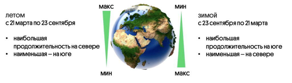 Пояснение: 25 апреля Солнце в зените в северном полушарии. Когда Солнце в зените в северном полушарии (с 21 марта по 23 сентября) продолжительность светового дня возрастает при движении к северному полюсу.