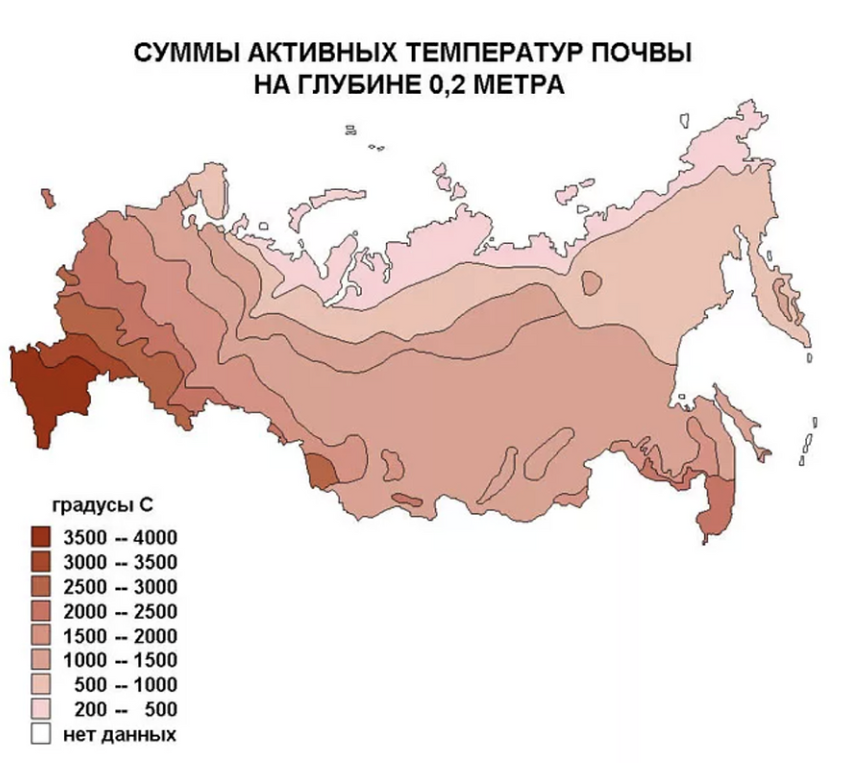 Пояснение: Сумма активных температур — показатель, характеризующий количество тепла и выражающийся суммой средних суточных температур воздуха или почвы, превышающий определённый порог: 0, 5, 10 °C или биологический минимум температуры, необходимой для развития определённого растения.