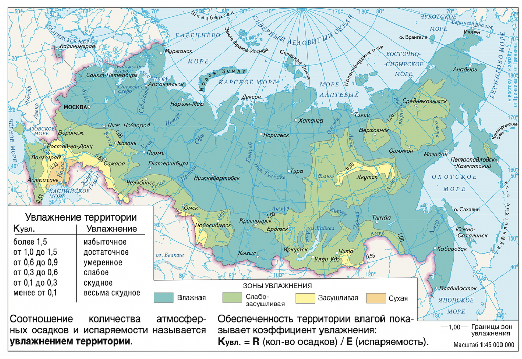 Если К = 1 – увлажнение достаточное (лесостепь и степь).