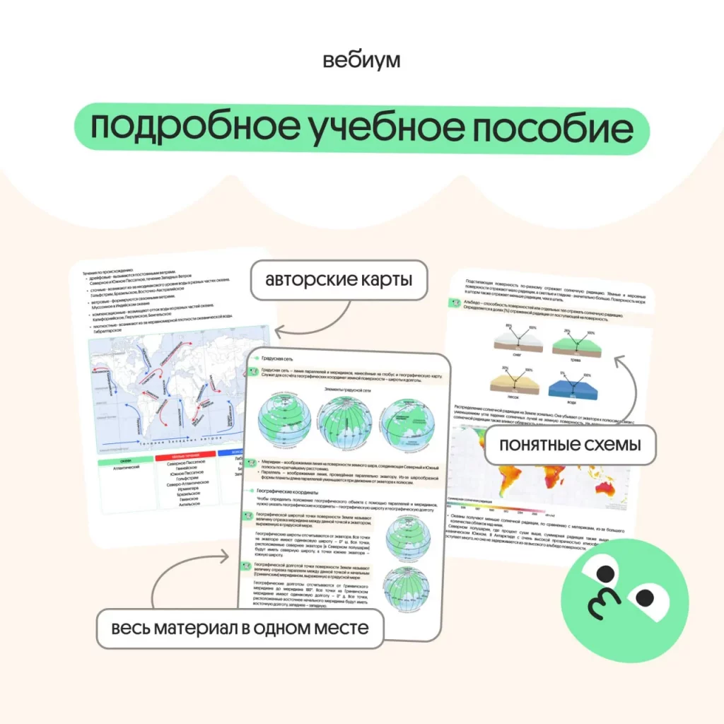 На курсе подготовки к ЕГЭ 2026 по географии подгружается учебное пособие на каждый месяц — в нём вся теория, которую мы пройдём.