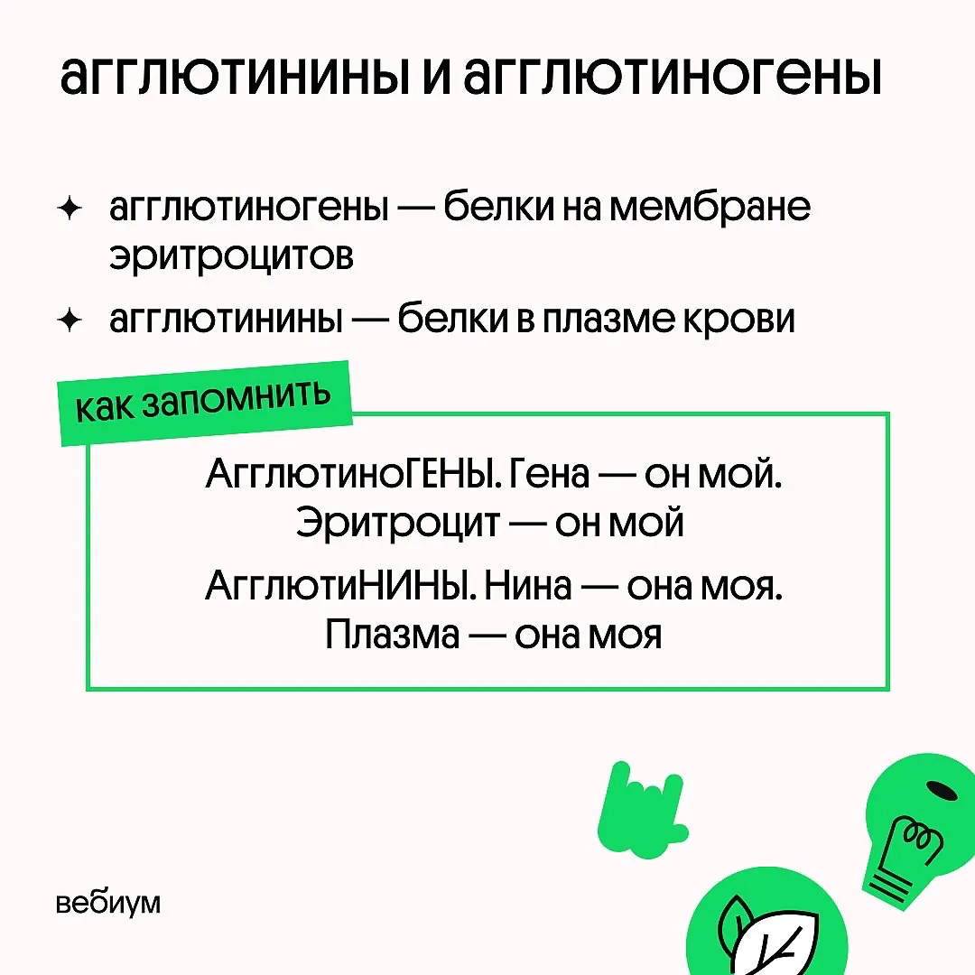 Ниже шпаргалка, которая поможет с запоминанием. Бонус — табличка с группами крови.
