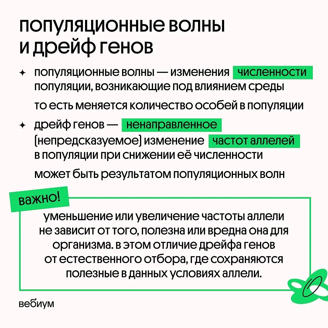 Ещё два похожих термина из темы про эволюцию. Волны и дрейф — точно что-то про поток и движение, да? 🙂