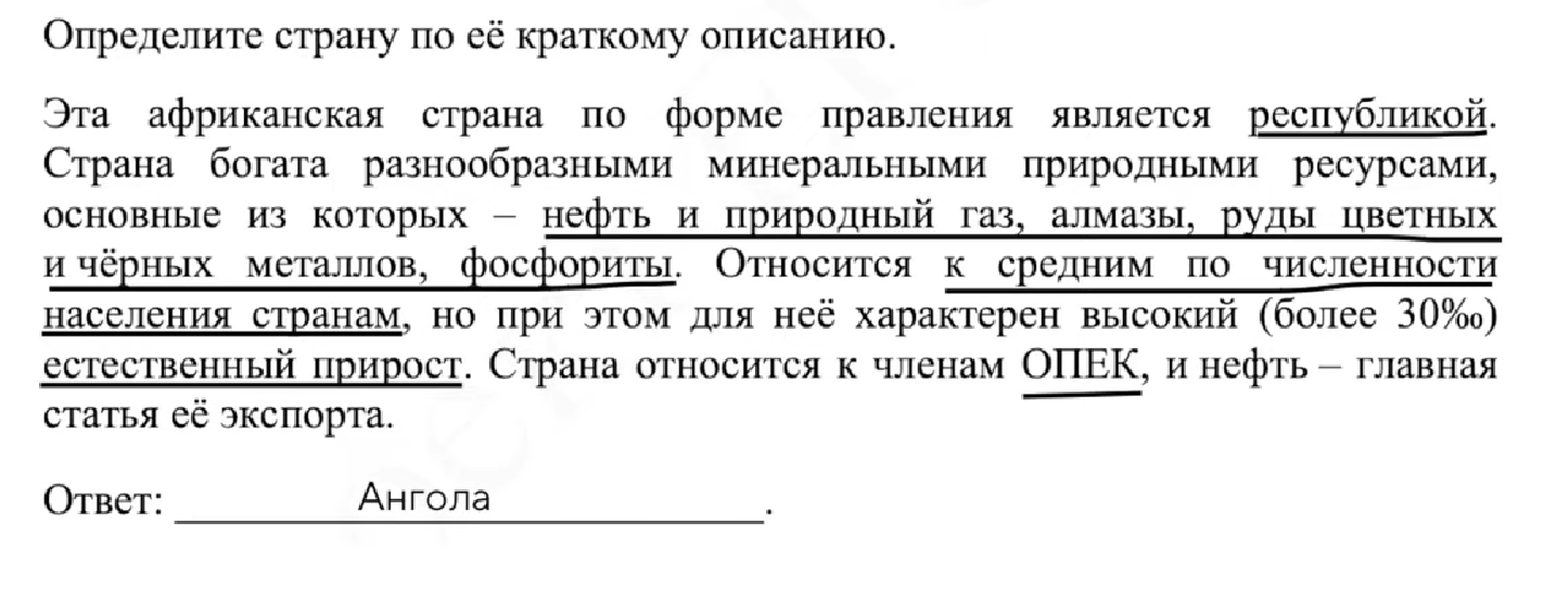 17 задание — на определение страны по описанию. Выделяем основные «теги», по которым мы можем вычислить страну, и думаем.
