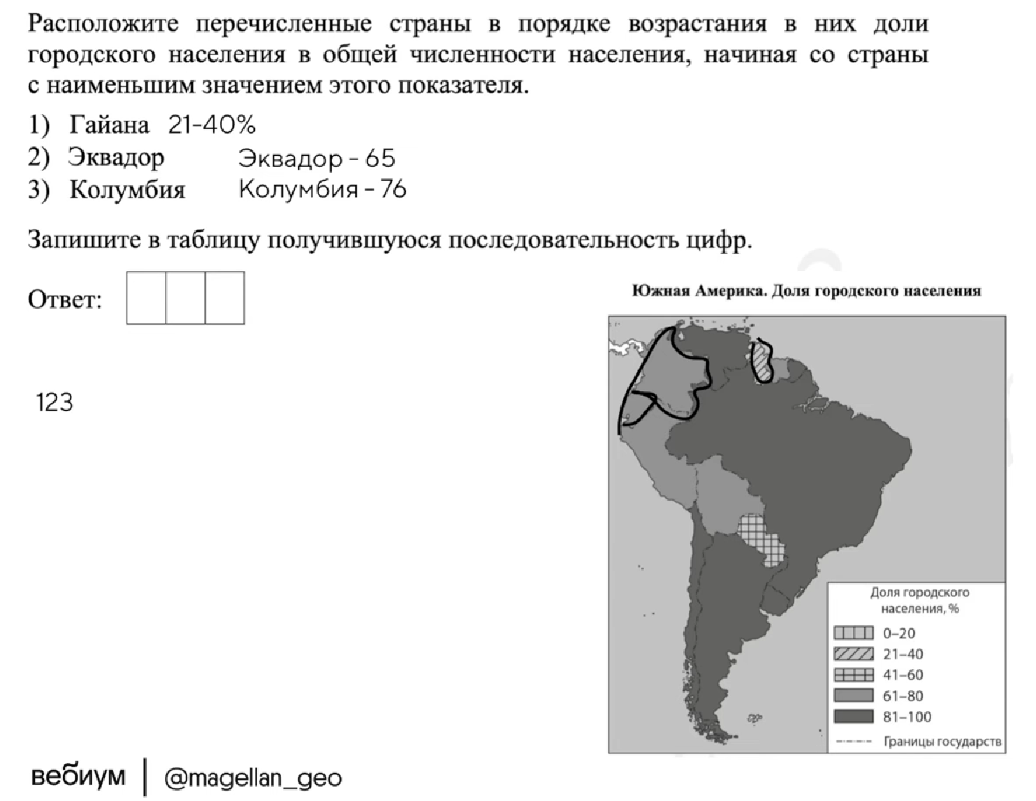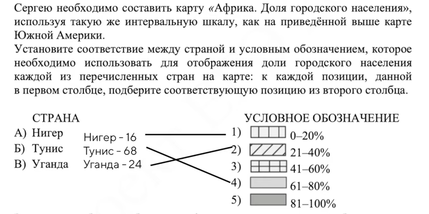 В 20 задании также пользуемся справочными материалами. Сначала находим для каждой страны по таблице долю городского населения, затем сопоставляем.