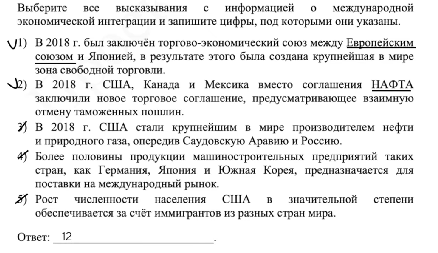 Сложность 12 задания в том, что в нём может быть от двух до четырех правильных ответов.