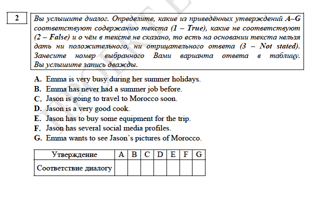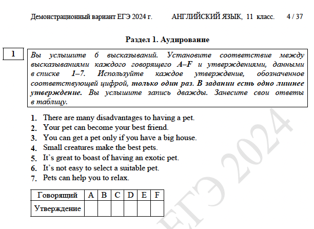 Прогноз Кристины Спенсер на 2024 год: мало выпускников выполнят второе задание по аудированию на максимум. Да, оно относится к базовому уровню, но никто не отменял ловушек от составителей. В предложенных вариантах ответов два утверждения по смыслу могут означать практически одно и то же. Поэтому оценивание этого задания превращает его в фильм «Миссия невыполнима».