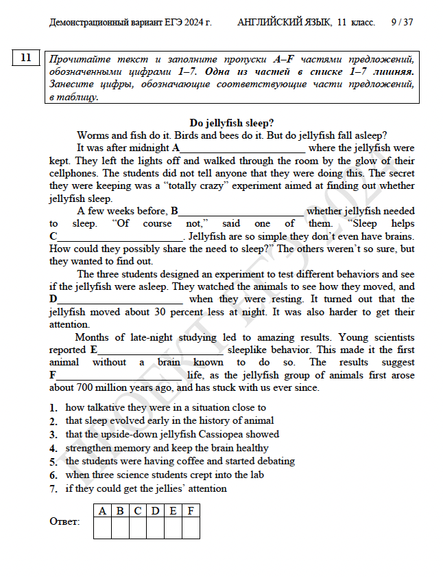 С заданием 11 из раздела «Чтение» та же история, что и с первым заданием из «Аудирования». Вместо трёх первичных баллов теперь дадут максимально два.