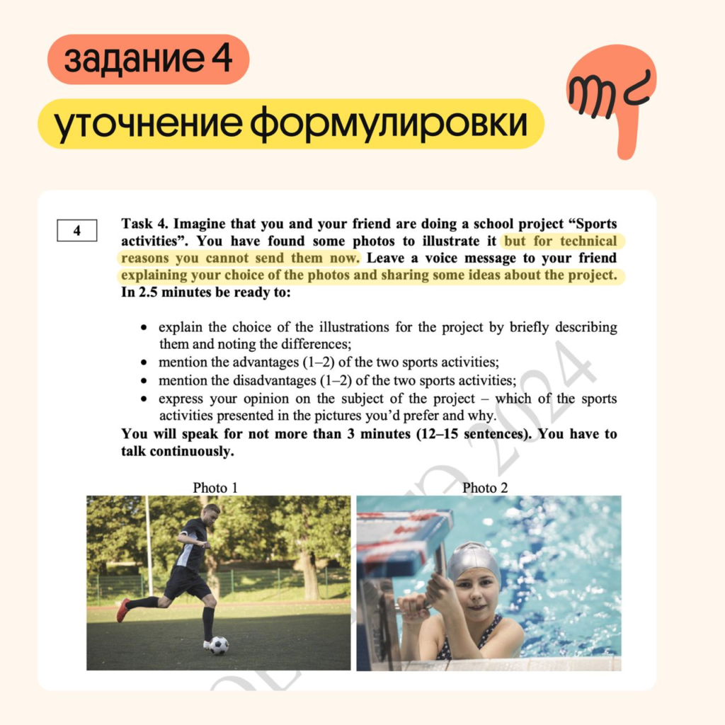 Также появилась фраза о том, что в голосовом сообщении необходимо пояснить свой выбор и поделиться идеями касательно проекта: “Leave a voice message to your friend explaining your choice of the photos and sharing some ideas about the project”.