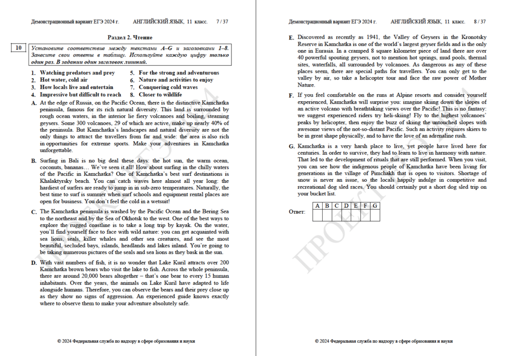 Сюрпризы после разбора демо ЕГЭ 2024 по английскому языку не заканчиваются. 10 задание в разделе «Чтение» снизили до трёх первичных баллов по такой же схеме, как и второе задание из «Аудирования».