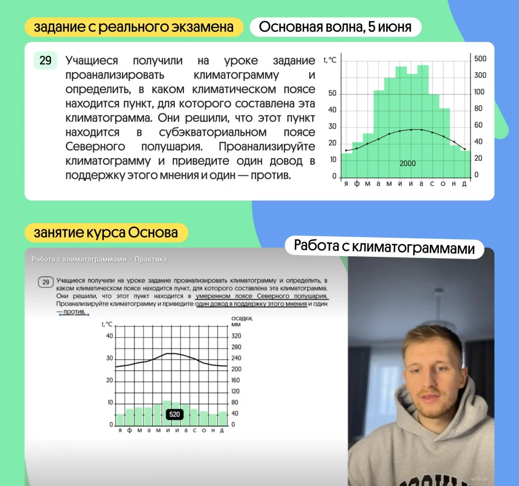 В заданиях ЕГЭ по географии могут меняться географические объекты, климатограммы, чуть переписываться формулировки. Но, когда у вас есть твёрдая база из прорешанного материала, вы справитесь со всем.