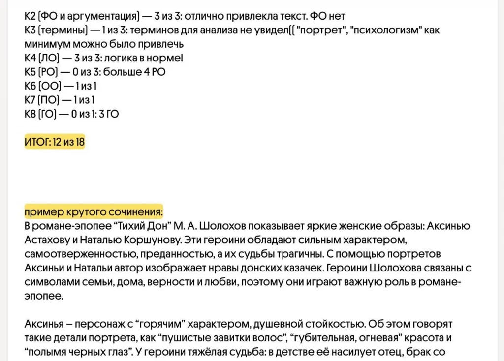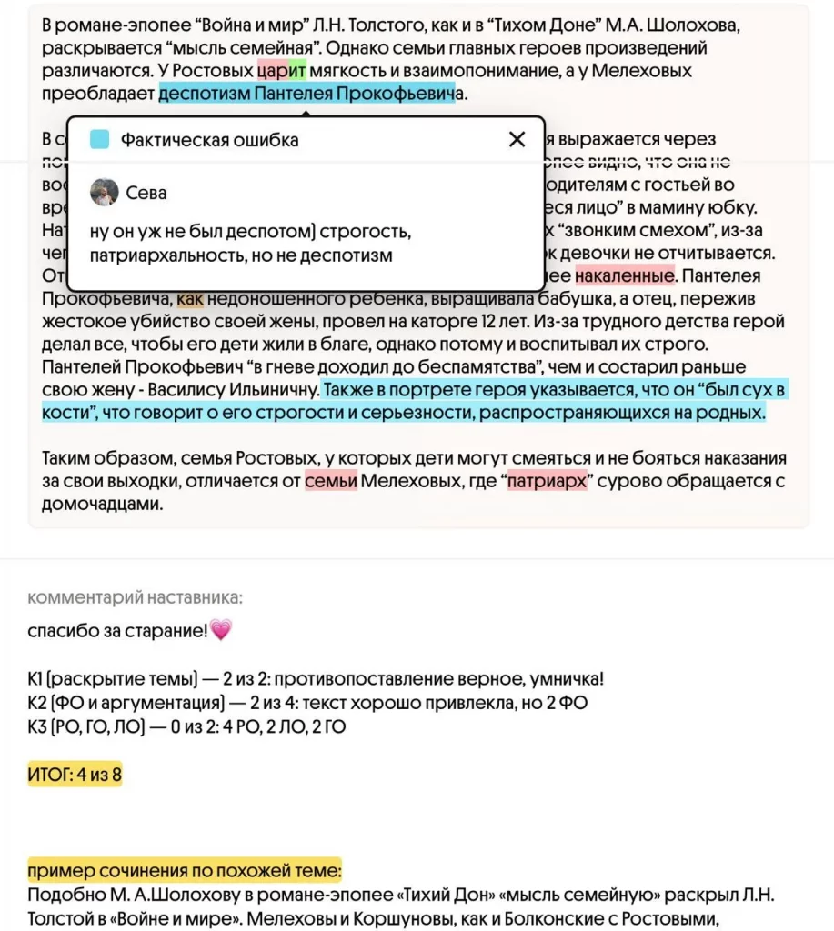 Вот так выглядит проверка работ выпускников Севы, нашего наставника ЕГЭ 2026 по литературе.