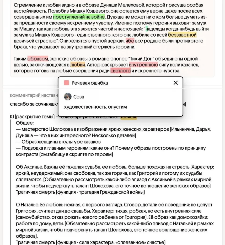 Вот так выглядит проверка работ выпускников Севы, нашего наставника ЕГЭ 2026 по литературе.