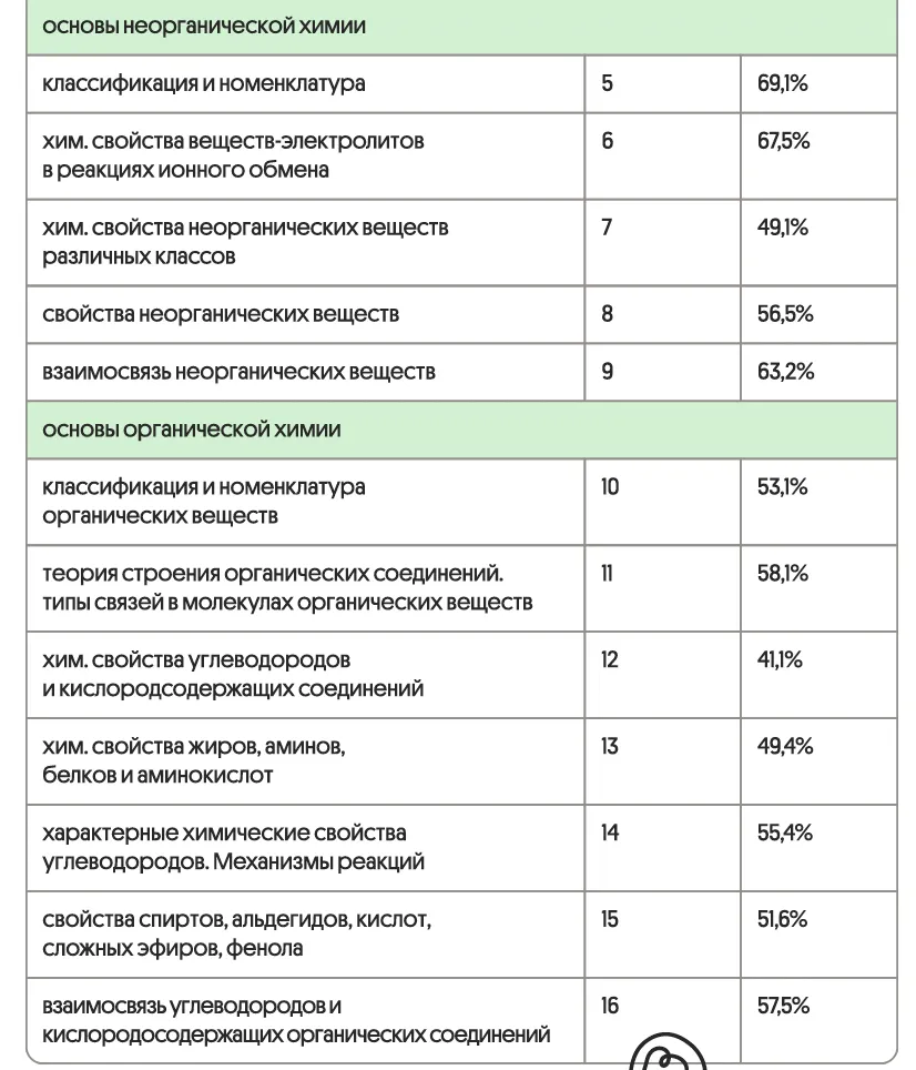 Падение результатов по свойствам веществ разных классов (49,1%).