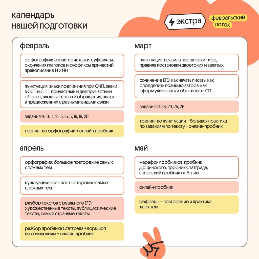 ⭕ Время распределим так: 3 месяца активно изучаем все темы + 1 месяц посвящаем повторению и активному решению пробников. Так мы не будем пытаться выучить что-то в последний момент, а закрепим материал;