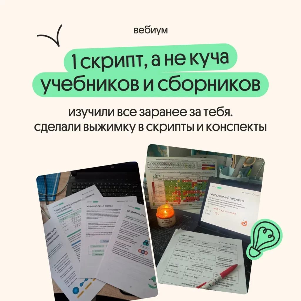 Сохранение доступа к скриптам, конспектам, шпорам вплоть до реального ЕГЭ 2026 по химии;