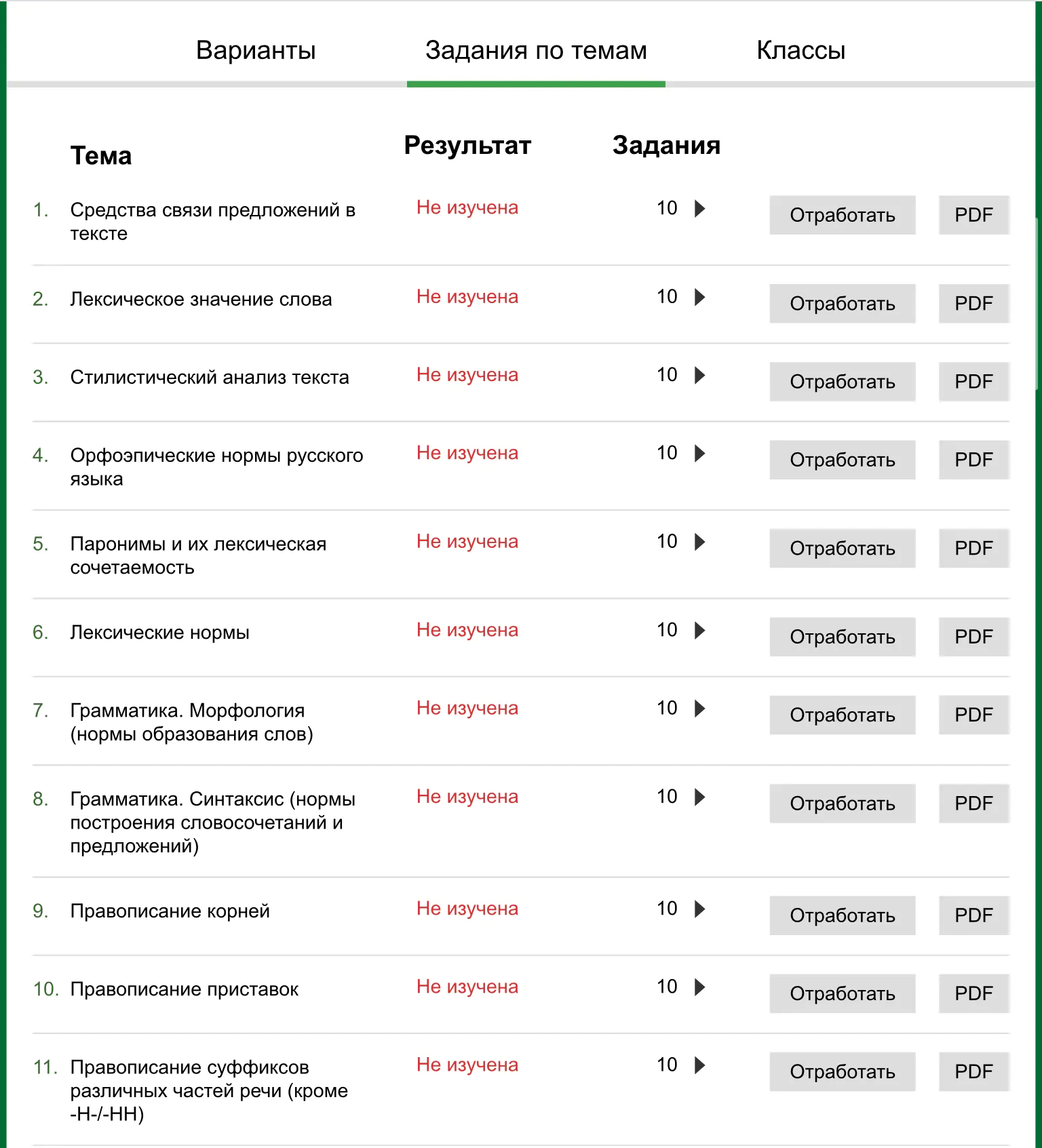 Также можно прорешивать задания по отдельным темам. Это удобно, когда нужно хорошо отработать сложную тему, не отвлекаясь на другие задания.