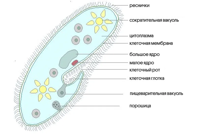 ◆ Клеточный рот (цитостом) — углубление для захвата пищи (бактерий).