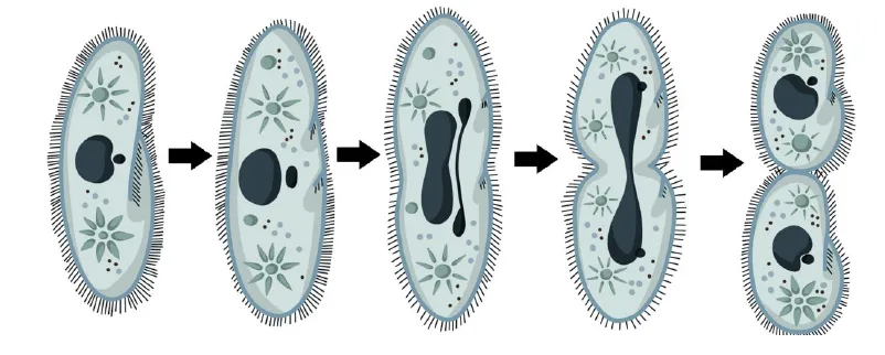 Две инфузории сближаются и соединяются цитоплазматическим мостиком.