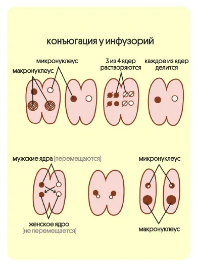 Мужское и женское ядро в каждой инфузории сливаются, образуя синкарион.