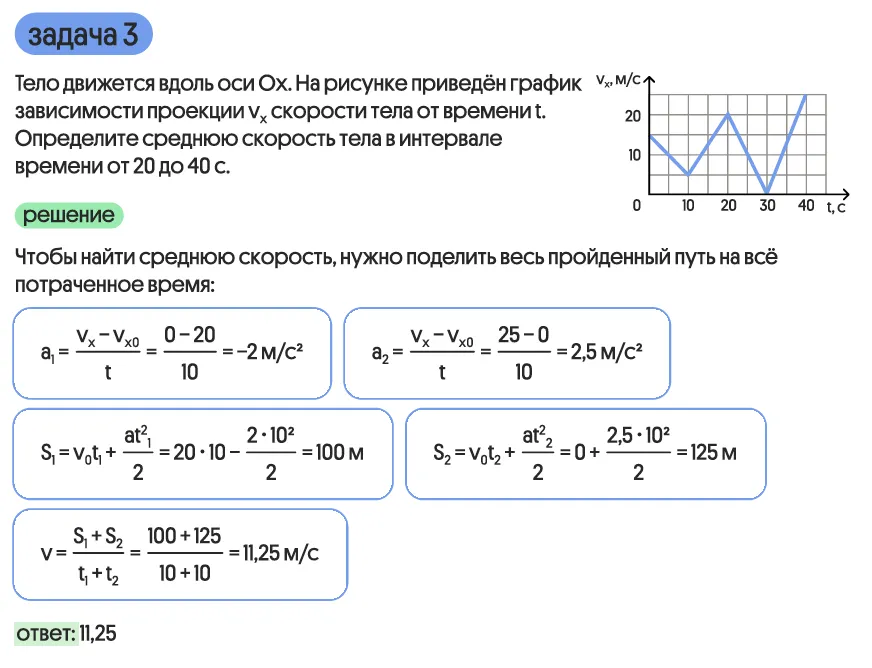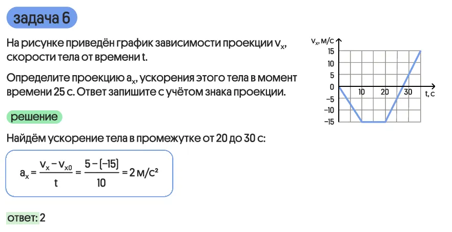 Определите проекцию axa_x ускорения этого тела в момент времени 25 с. Ответ запишите с учётом знака проекции.