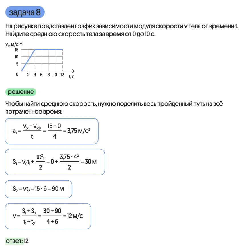 Найдите среднюю скорость тела за время от 0 до 10 с.