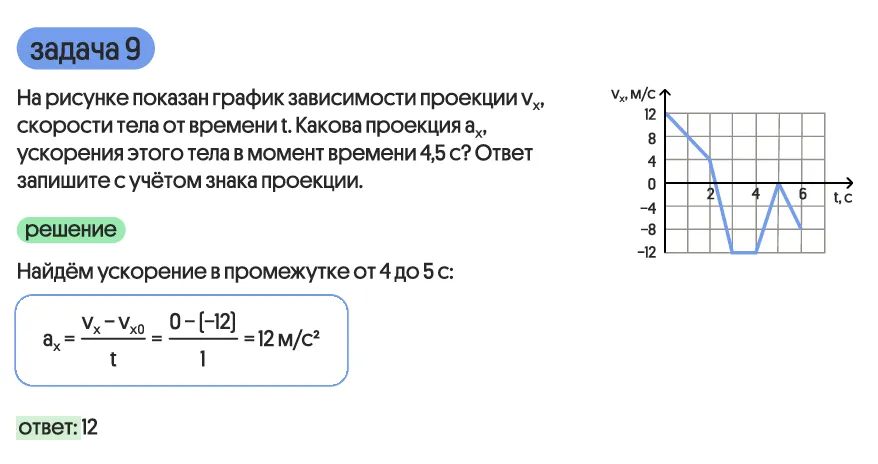 Какова проекция axa_x ускорения этого тела в момент времени t=4,5t = 4{,}5 с? Ответ запишите с учётом знака проекции.