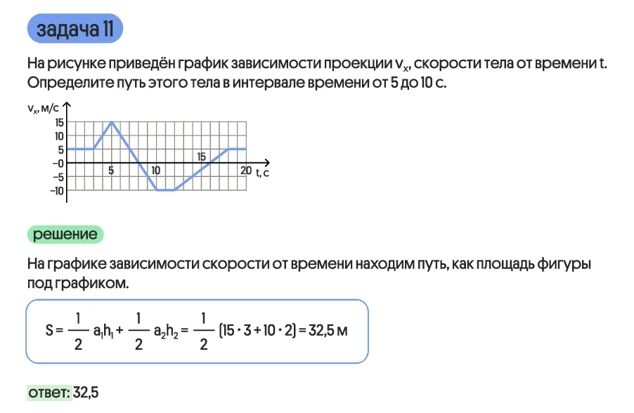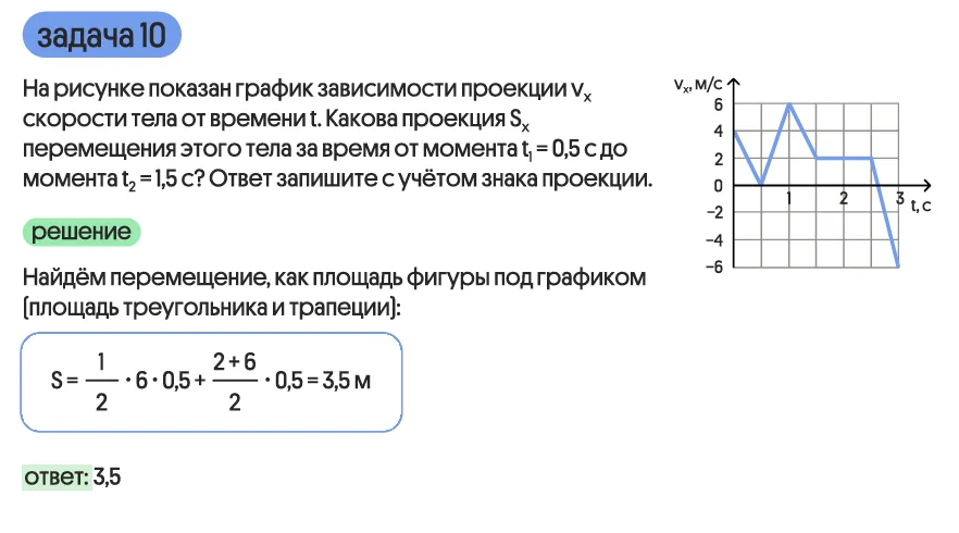 На рисунке приведён график зависимости проекции vxv_x скорости тела от времени t.