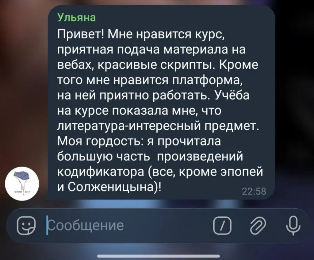 Приятно читать такие теплые слова и осознавать, что вы становитесь ближе к литературе. И я могу быть полезной вам на этом пути!