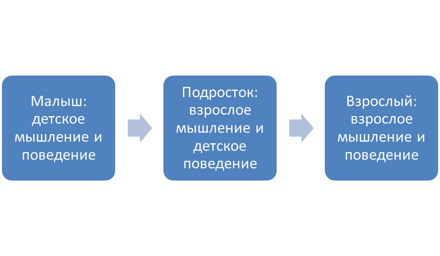 Ребёнку нужно время, чтобы начать думать, вести себя по-взрослому. Сначала появляется взрослое мышление — первые глобальные мысли, цели — но взрослого поведения ещё нет, ребёнок продолжает иногда плакать, психовать, срываться на окружающих, кричать «не хочу, не буду!» В этом резонансе зарождается максимализм.